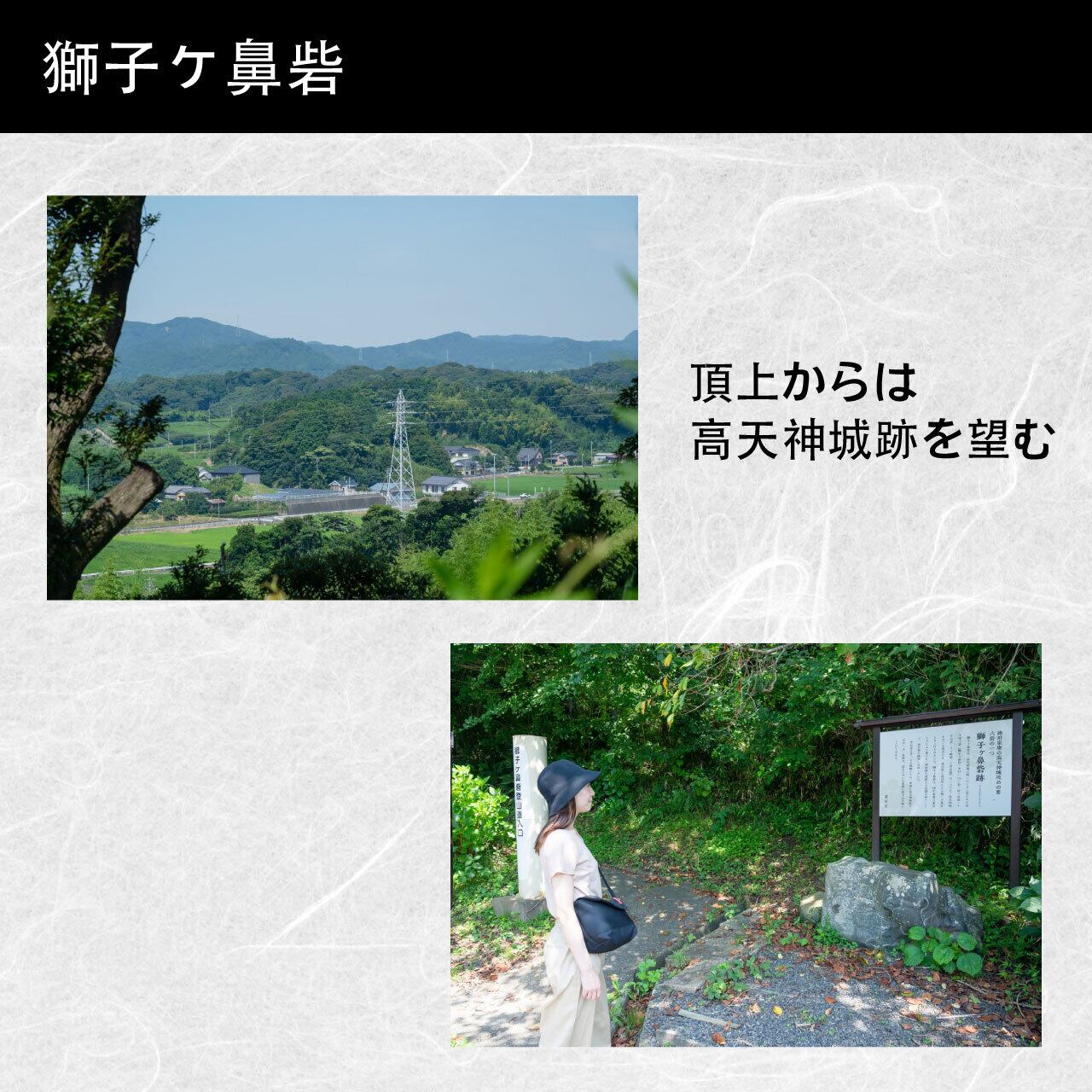 ■獅子ヶ鼻砦は徳川家康が天正8年(1580年)6月に、高天神城包囲攻撃するために築いたもので、大須賀康高が守っていたといわれ、笹ヶ峰御殿(小笠山砦)・中村砦・能ヶ坂砦、火ヶ峰砦・三井砦などともに築いた6砦の一つです。
