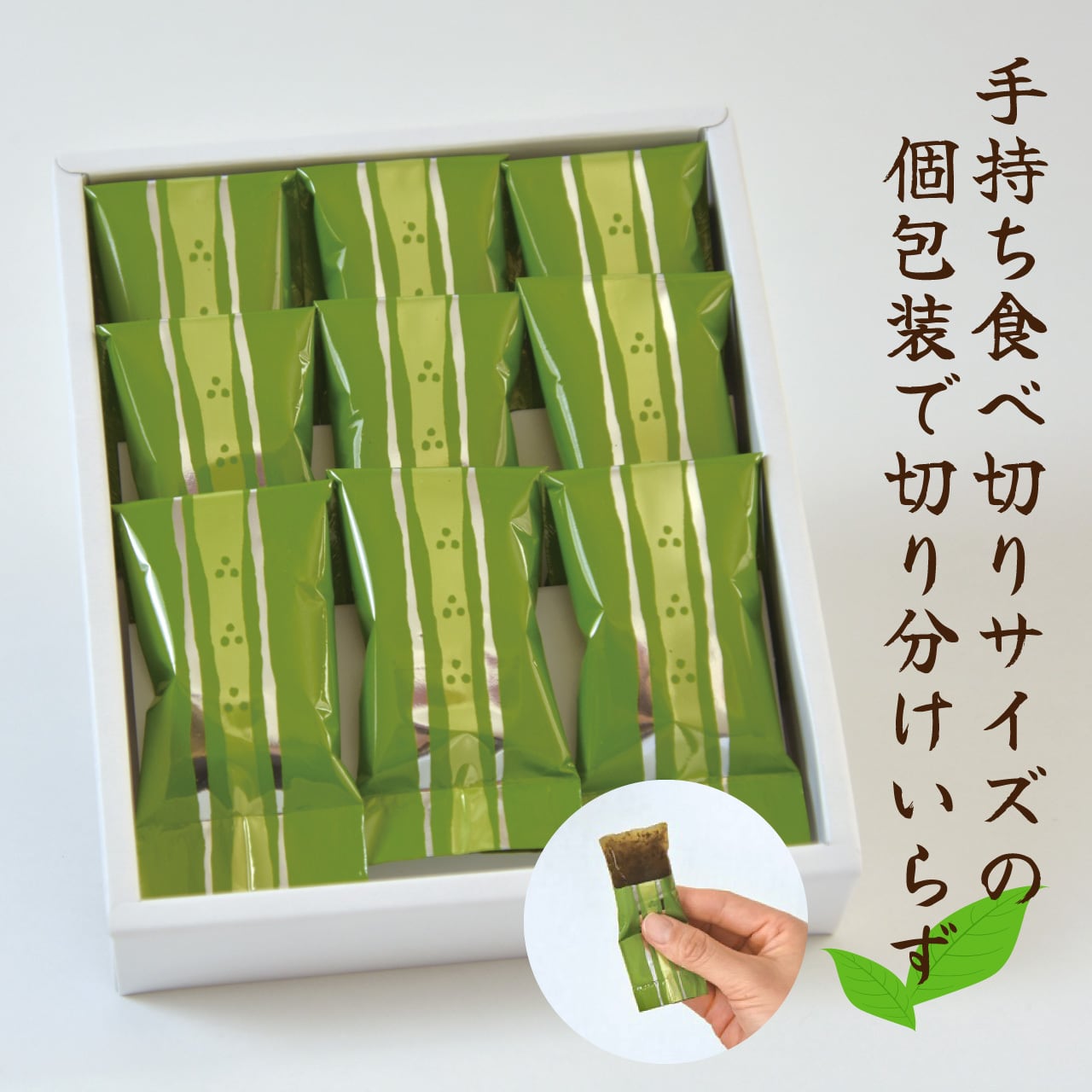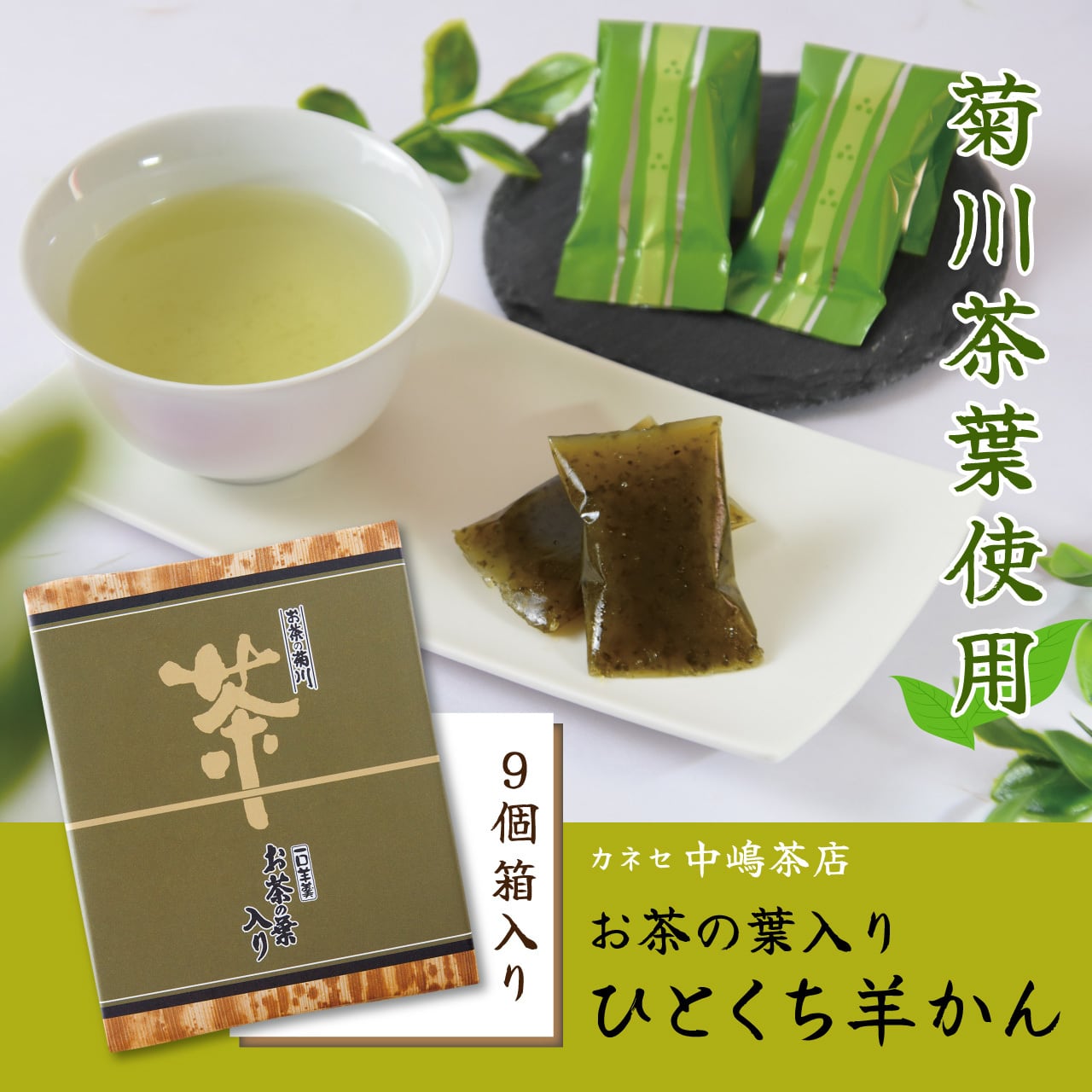 お茶の葉入りひとくち羊かん 9個 箱入り